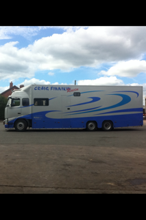 2000 V Reg Volvo FH12 race transporter for sale. Will take 2 cars with ease plus welder and tools boxes, there is also lots of tyre space with 2 tyre rack’s, 1 to the front & 1 to the rear as well as a work bench and side lockers for extra storage. The car area is fully chequer plated and has good lighting inside and out. Loading is made easy with an extended tail lift that is run from the PTO. The living area will sleep 6 and comes with fridge, 4 ring cooker and shower. The truck is well maintained both inside and out and first to see will buy. The truck will has recently been MOT & Serviced £54000 O.N.O For more details or to make an offer contact Craig on 07850 378790