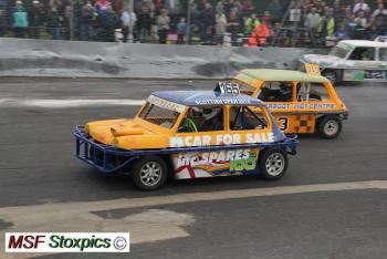 It's carl mawdsley joffs mechanic that is racing joffs car number 299 and joffs dad John Gibson that's racing the micro Banger number 249.
