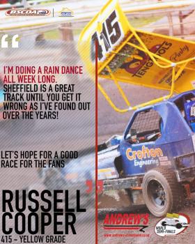 2. Russell Cooper (415) is looking forward to the World Championship Semi Final at Sheffield on Sunday. Russell knows that this track takes no prisoners and one false move could mean game over but that could play into Russell's hands. Russell's shale form has been better than his tarmac form so far this season having picked up good places in a number of races, including a race win in the Whites and Yellows race at Kings Lynn at the end of May. 🌍 World Championship Semi Final #1 🌍 Sunday 4th August 2019 @ 12:30pm Owlerton Stadium Penistone Road Owlerton Sheffield S6 2DE Sponsored by Andrew's Coaches & Tours www.andrews-of-tideswell.co.uk