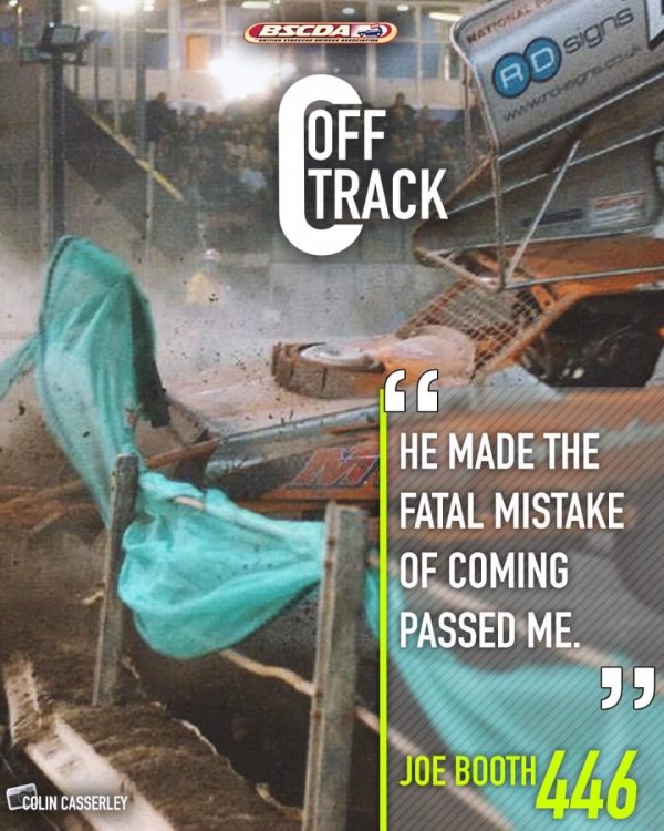 On Sunday we speak to Joe Booth (446) in the next episode of Off Track 2021 where we discuss the incidents of ‘that’ Grand Final at Coventry in June 2016. Before listening to Joe’s memories of that night, why not relive that race, considered one of the greatest ever by many fans, brought to you from the stands by Simon Antrobus. Off Track with Joe Booth 📆 Sunday 14th March 🕗 8pm Facebook and YouTube - BSCDAF1