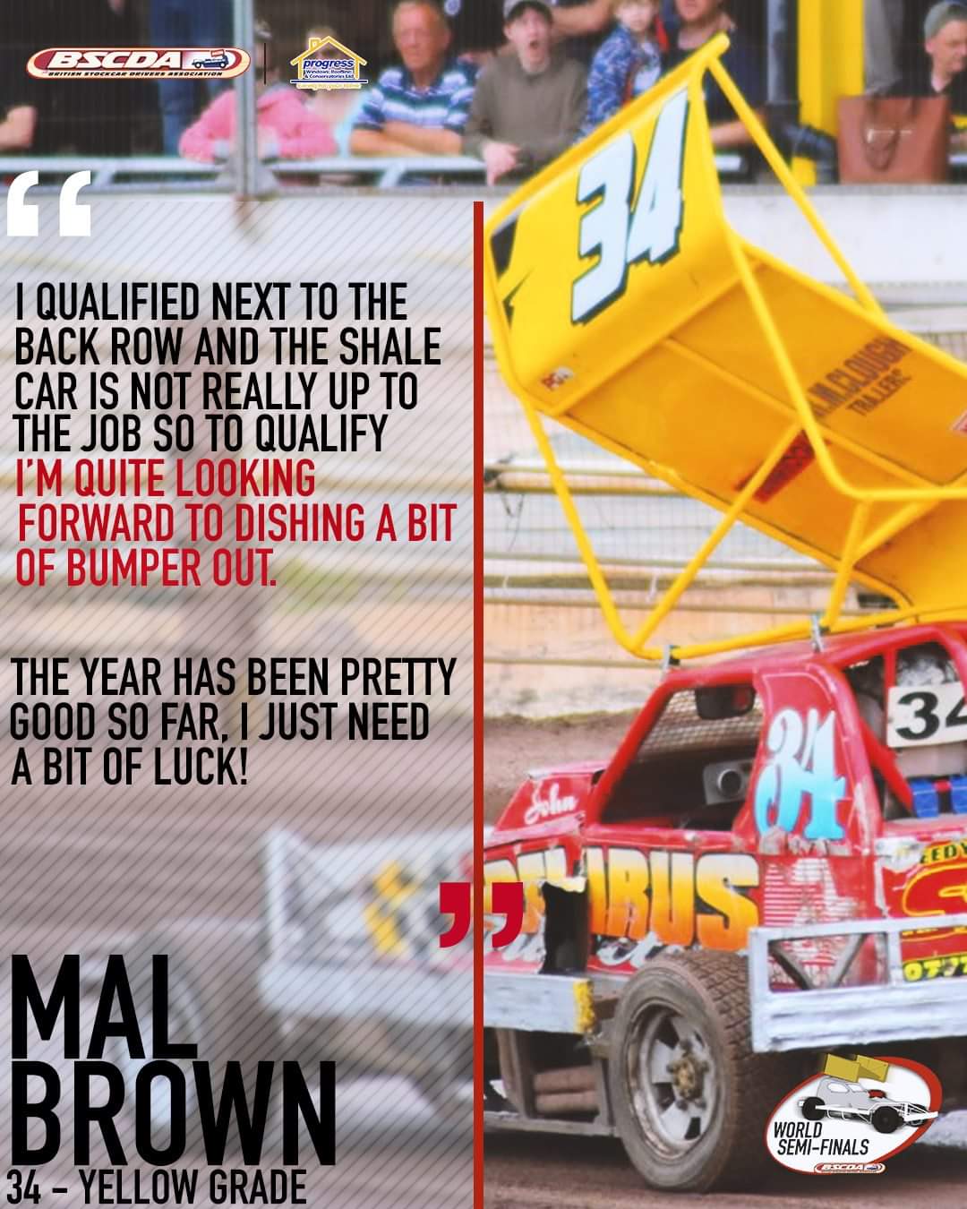 Mal Brown (34) is a shale racer through and through and his form on the loose stuff in his limited appearances this season gives him a points average similar to that of a red grade driver. Mal comes into this weekend off the back of an excellent outing at Sheffield last weekend where he picked up a 4th in his Heat, 3rd in the Grand Final and victory in the Grand National. This has been his best meeting so far of 2019. Mal's best score in terms of World Championship qualifying points came at Sheffield again back in April. As for tarmac......it's been some time since we saw Mal on tarmac but that is exactly what we will see tomorrow. Expect to see a big push from the rear of the grid as Mal has nothing to lose and everything to gain as he tries to gain a place at the World Championship Final next month on his preferred surface. 🌍 World Championship Semi Final #2 🌍 Saturday 10th August 2019 @ 6pm Buxton Raceway Dale Head Road Buxton SK17 0RR Sponsored by Victory Lane Awards http://www.victorylaneawards.com/ -