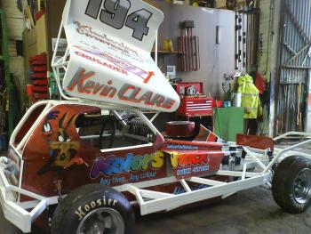 9. Chris Clare current (day-glow) brisca F1 for sale less engine and gearbox. Chassis was built by FWJ. The car is very strong and very fast has won heats and finals on shale The car is up to current 2014 specs B&K transit front axle with twin links, B&K rear transit axle with single link and birdcages. All lever brake bias. Left foot braking. Car is currently running a big block can easily be converted to small block. Car has been raced on shale and tarmac. Car comes with a shale wing. £6500ono also have a tarmac wing with brackets for extra cost.