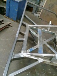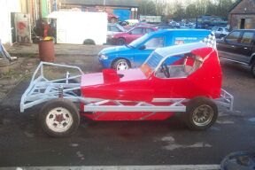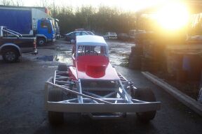 13. Brisca f1 chassis for sale, Built by Nigel Parker, Raced by Keith Chambers, The chassis we think only raced 2-4 times, since it was built, The chassis is very straight, all new undercarage, New drop down supports for drop arms, All new bumpers and nerf rails, New Mesh, New Steering bracket inside cab, Car has been completely re paeled, New Bonnet, new side panels, new lower panels, new rear panel, The fire wall is solid welded from behind seat up over tank, Radiator bracket is new and welded in place, The chassis is a steped chassis - have spoke to brisca scrutineer and also a member of the brisca committee it is legal, £750.00 ono Tel Chris 07772912327