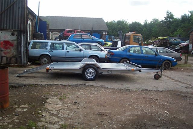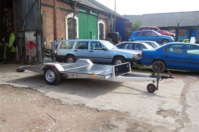 Hi we have for sale a single axled car trailor, could be used for mini, or hill clim car, rebel that soert of size vehicle. could even be slighlty modified to carry a couple off motor bikes. the trailor is light for us to push around will hopefully getting it weighed soon so will be able to tell u how much it does way. the chassis is a caravan chassis, which we stripped down back to chassis only and built a new frame on for support and strenght. the chassis and new steel work has all been painted to protect it. the trailor bed is made from wold with alloy strips and sealed up over the gaps of would to provent water getting in. there is also on the end of the trailor two chquar plate strips to protect wood were the vehile would come on to the trailor of the ramps. the ramps are with the trailor they latch on to the front of trailor for easy access when removing and storing away for traveling. the ramps are made up from L section steel with woodern inserts and supports for wood. all wood and new steel has been painted and treated. the arches are made up of steel frame with chaquar plate over the top, a vehicle could go over the arches if need be the y will be strong enough. the trailor is all lighted up all working. all wiring is brand new. has reflectors on back and on side of trailor. has front white marker lights on trailor to all wired up and in working condition. the trailor is new. the axle has been stripped off and cleaned up and put back on with all new bolts and nyloc locking nuts. the tyres are in good condition. the back off the trailor slightly slopes of to make it easier for loading. the vehicle on to. the dimentions of the trailor are as follows: the width between arches is 61" (5ft x 1) the overall width is 77" (6ft x 5") the length of the bed on the trailor is 11ft x 1" the overall length from towing hitch to end of trailor is 16ft. the trailor looks very smart. please check measurement of vehicle first. any questions please ask. I have more pictures if required.