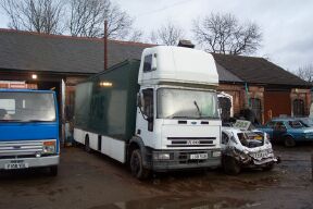 L reg Eurocargo with sleeper cab for 2 on top of the cockpit area, with a 28ft long x 8ft high solid sided box fitted to chassis we have had two brisca f1 stockcars behind each other inside also leaving space, has already been beavertailed, chequar floor, with ramps, the back door has been installed, opens and closers on gas strutes, have fitted lower panels to cover chassis area up, the box has a double exit door on the passanger side rear, is a good runner starts first time, no mot or tax, is a fantastic project for someone to get there teeth into and finish off, we just dont have time to finish it off, for more information contact kevin clare on 07772357340 £1500 might be open to p/x offers