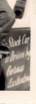 3. I have a photograph, size 5 1/2 inch x 3 1/2 inc overall .... picture 1/2 inch smaller, of Bernie Ecclestone Stockcar. Shows back & partial side on which is the legend Stock Car is driven by Bernie Ecclestone as scan. Compton & Ecclestone advert on rear of an American Coupe as scan. In the photograph are 2 people standing by car. I am sure one of which is Bernie Ecclestone. Price on application. 10 o/o of price donated to Drivers Benevolent Fund. Serious viewing only at Brafield or Coventry, hope not to appear rude as I am sure lots of people would want to see it. GoodRich