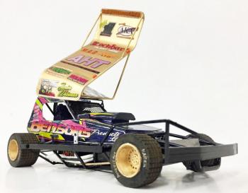 FOR SALE £185 (postage & packaging included) Frankie Wainman Jnr Gold winged shale car 1:24 scale 3D printed model Dimensions 15cm length, 8cm wide, 13cm high Model has a removable bonnet with engine, engine mount, radiator & exhausts. Inside the cab there’s a seat, steering wheel, fluid reservoirs plus other details. Rollcage construction and panels. Other details include suspension, link bars, panhard bars, steering arms and diff. Tyres have shale tread and are painted to look like they’ve been driven on track.