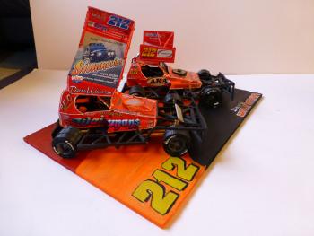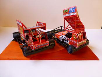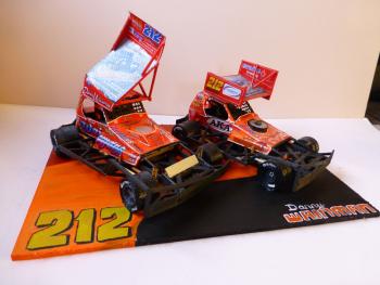Danny Wainman Shale and Tarmac cars Completely hand crafted by myself from balsa wood and card. The models are 1:24 scale. The cars are painted in acrylic paint and signs are designed by myself on adobe and printed onto water decal paper Models have fully detailed cab with seat, steering wheel, dials. Also Engine, exhausts, radiator. Link bars, steering arms, pan hard bars, axels, suspension springs and supports The models are mounted on a board painted in the cars colours. The price is £70 ono plus £5 P&P, payment can be sent over pay pal (friends and family) This would make a great Christmas present for any Danny Wainman fan/ Wainman fan Thanks Tom