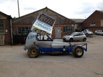 ANDY FORD 13 F1 FOR SALE CRONSHAW / FWJ BUILT THIS CAR SERVED ANDY WELL IN THE TIME HE HAS RACED IT , HAVING WINS ON TARMAC AND SHALE ! SINCE LAST TIME ANDY RACED IT CAR HAS HAD A FULL REBUILD INC NEW BUMPERS , SIDE IRONS , PANELS , ANY BENT BAR CHANGED , NEW ENGINE MOUNTS . CAR WAS SANDBLASTED AND POWDER COATED BLUE AND PANELS PAINTED SILVER BY K COOPER RACE PAINTS ALOT OF NEW PARTS BENN USED IN REBUILD AND CAR HAS ALL THE RIGHT BITS INC BIG BLOCK CHEVY BUILT BY IAN WHITWORTH H20 GEAR BOX NEW ALLOY RAD KIRKEY FULL CONTAINMENT SEAT NEW FUEL TANK AND BATTERY LD REAR AXLE TRANSIT FONT BEAM AXLE SINCE THE REBUILD GARY (ANDYS SON) HAS RACED THE CAR ONCE AT BELLE VUE AND WILL BE OUT AT KINGS LYNN SEMI FINAL MEETING IN IT , AS WE ARE TRYING TO GET THE CAR SEEN TO HELP IT SELL THERE WILL BE SOME SPARES WITH CAR IF PRICE IS RIGHT CAR IS PRICED TO SELL AT £10500 ONO ANY MORE INFO RING ANDY ON 07414804319