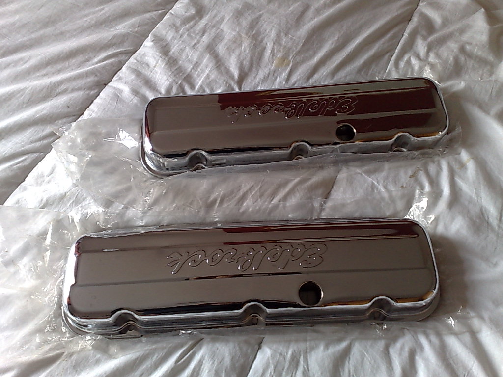 hi, i have for sale a pair of edelbrock chevy v8 big block chrome rocker cover brand new in wrappers £25 tel 07908773252 for more information