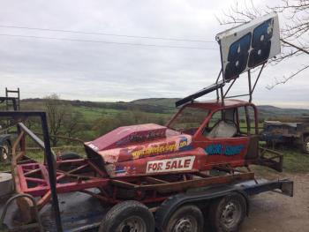 As used by me last season all the right bits will be sold as raced at last Coventry less engine,bell housing and gearbox.Crumple zones back and front .transit axles , American shafts both sides rear axle. Dampertec shocks and regulation brake pads all round £8500 Fwj 07989672303