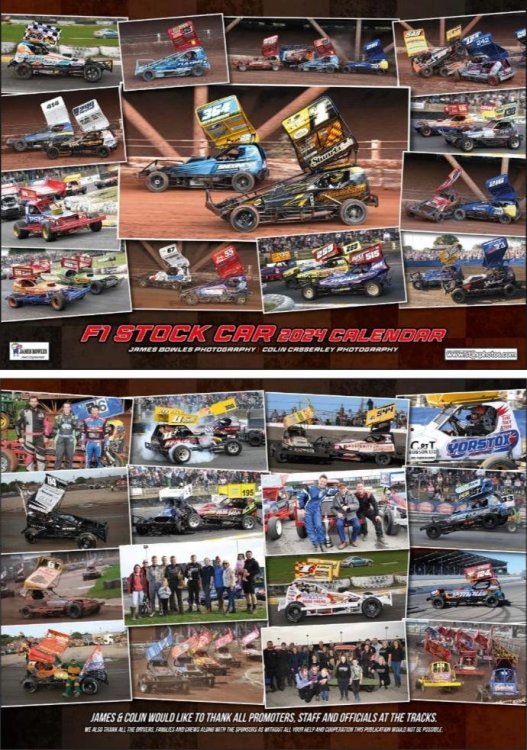 Good news, The F1 calendar has arrived from the printers and should be available at the StoxSigns stall at Bradford and Skegness . Cost at tracks £10.00, Over 140 photos from the 2024 season