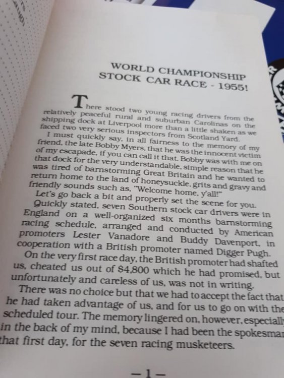 25. Great read Carl, Crawfish Crider also wrote about his time in the UK in his Road to Daytona Book. Sadly Bobby Myers was killed in a race accident shortly after returning to the USA, his son Danny "Chocolate" Myers was on of the crew members for Dale Earnhardt, Sr,