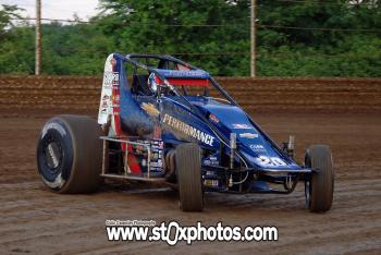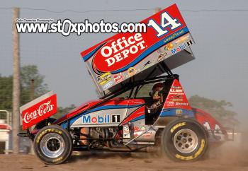 Th #14 Sprint car is NASCAR driver Tony Stewart. He competed in the Pocono, Pennsylvania Sprint Cup race earlier in the afternoon and flew up to Utica-Rome Speedway, New York to race in the evening.