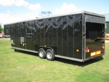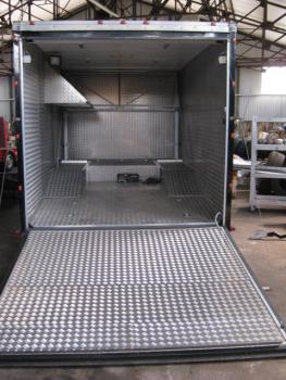 Posted on behalf of Mick Sworder, more photos to follow Race car transporter heres our latest project thats now finished and waiting new owner! we have fully refurbished living area and completly fitted all the garage area! ! living consists of tv, shower, bathroom, kitchen area, microwave, fridge freezer,air con, cental gas heating, We have changed all brakes on trailer, we converted them to air over hydrolic so they work off a tractor unit all brand new! 6.5 kva petrol geni any question ring mick 07974 147772