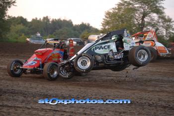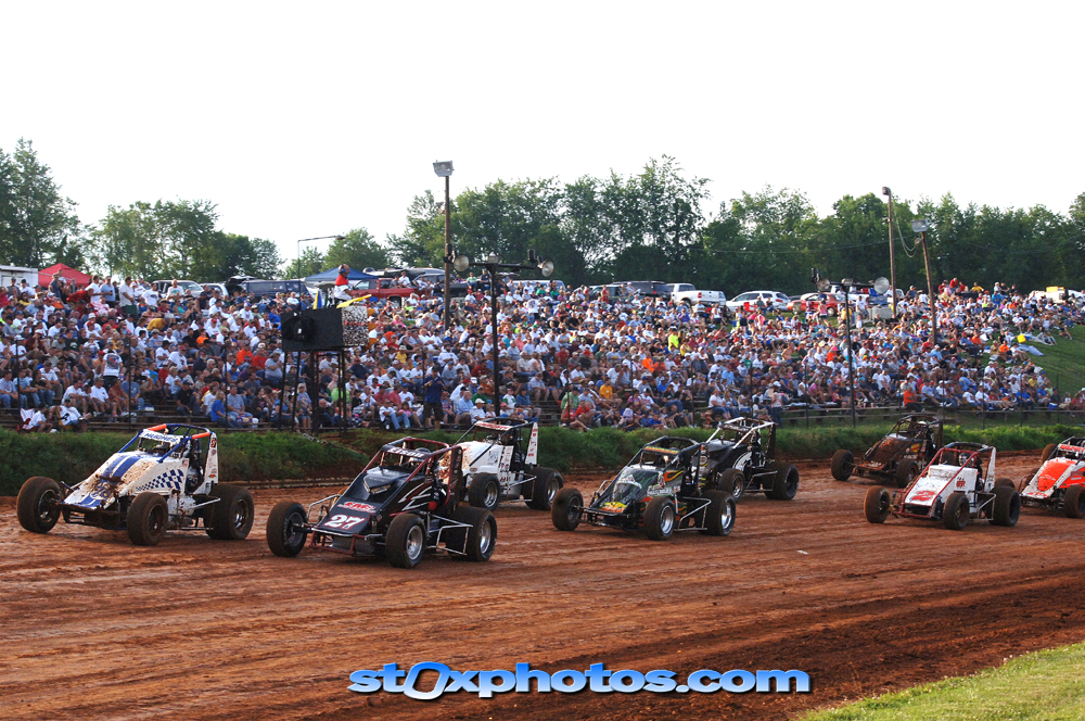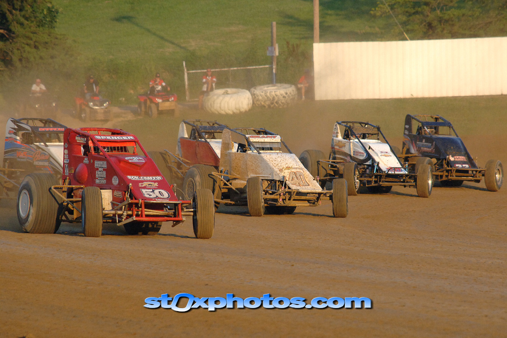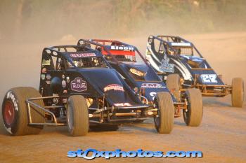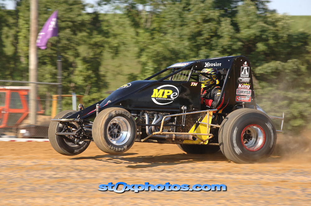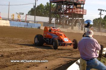 Back to the Hoosier State for next update, and before anyone gets the wrong idea, if you are not aware, Hoosier is the official name for a resident of the US Sate of Indiana. The State of Indiana adopted the nickname "Hoosier State" more than 150 years ago. "Hoosiers" is also the nickname for the Indiana University athletic teams. Hoosier is sometimes used in the names of Indiana-based businesses and organizations. Photos from Browstown Speedway, Brownstown, Indiana. The track is nice and wide and Wingless sprints go around there 4 wide or more! Take a look at some more photos at : http://www.stoxphotos.com/photos/