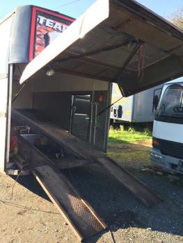 12. 53 reg Daf 13 ton race car transporter 11 months test & mechanically A1, The truck was bought from Warburtons bakery and converted into our race car transporter the middle of 2014, The 30' body has been split into 3 sections, Let's start with the garage section, it's 13' in length & never tailed there is plenty of room for any saloon or open wheel race car, there's a built in tyre rack, re tractable air line, 24 volt 4 tonne winch plenty of power to pull your race car in, there's plenty of storage for spares tools etc, there's lights for working when it's dark, slide away ramps and a fool proof mechanical lift up rear door, The living area is split into two sections, the first has twin slide opening windows, U shaped seats that lift up for plenty of storage, there's a 32" flat screen T.V that is powered off an inverter, below the tv is the cut through to the cab to allow access to the driver and passengers The 2 nd section of the living area has been split into two there's two bunk beds 6'6" in length then a partition into the end bedroom with a large double bed. The 2nd section has been finished to use but is more or less a blank canvas to be finished to your requirements supplied is a new sink & unit that we bought but never fitted & plumbed in. Purchase of a house forces a very reluctant sale £10000 will buy it today call PJ on 07554444690 for answers to any questions