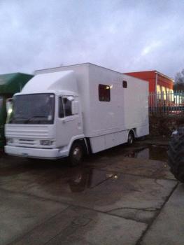 1997 Leyland daf 7.5 tonne 130 race truck, bought direct from warburtons in 2007, she comes with more documented history than our local library! we converted the rear to carry our f1 stockcar ( can also be used for other formulas) the rear is fully checker plated, there's a built in tyre rack, plenty of storage, 5.5kva 110/240v generator, power points, fitted airline, good strong winch. There's brackets to hang a f1 shale wing up There's 5 belly lockers giving more than enough room for storage for all your spares and equipment The living has been refitted this winter,new wooden flooring, new side windows and a new side entry door, there's plenty of seating for 8 also a double bed, She's had a full service & check over before the season started also a re spray in artic white to freshen her up and more lights fitted than a Harrods Christmas tree, We're only putting her up for sale to help fund a larger truck so we can carry both PJ's car & my new one price wise we are hoping for £7500 but if your coming with a tesco bag full of cash I'm sure we can do a deal or if you have a big truck ready for converting and want to do a Saturday swap shop give PJ a call on 07554 444690 and he will talk your ears off!