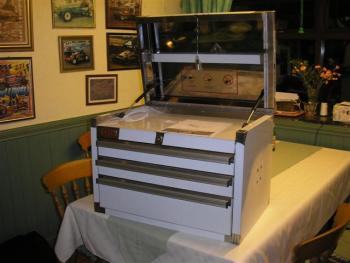 21. Hi everyone, I have this stunning stainless steel tool box for sale, 1st of all the dimensions are 27.83"(w)x17.51"(d)x19.01"(h),the build quailty is amazing the box has been fabricated out of stainless steel, there's 2 extra smooth hydrauilc lifts on the top lid which is hinged on a full length stainless steel piano hinge, the drawers have full extension ballbearining slides and have aluminium extrusion drawer pulls with saftey caps! The box has never been used,it has only been taken out of it's packing for the pictures for these photo's, it still has the white plastic protective coating on it! The price for the tool box is £150 I Can post on a private carrier service in th UK, the box inc packing weighs a bit so the postage will be £20, if it's any more i'll stand the difference. Thanks for looking, please mail me at info@waynehelliwellracing.com