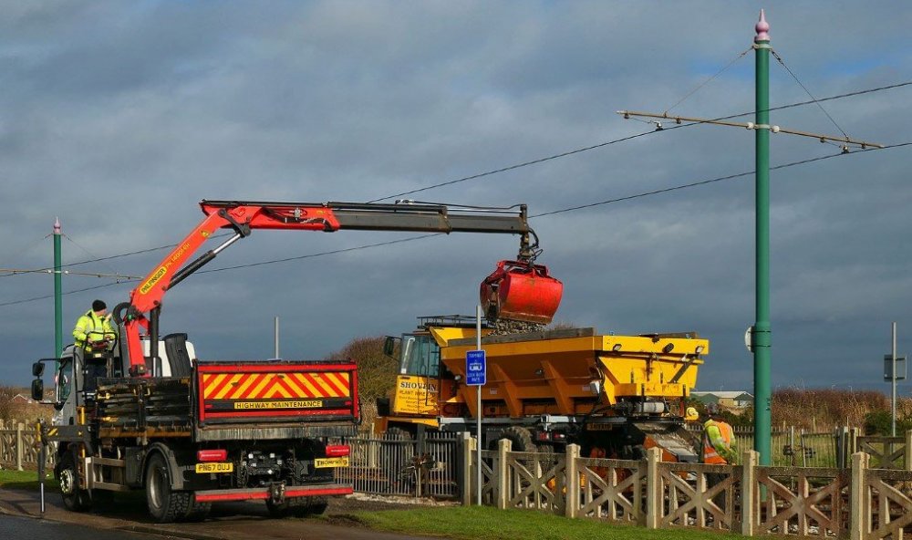 22. Thanks lads. Recently we had a couple of rare visitors to the Blackpool tramway. Thwaites TD12 Ballast Distributor Plasser 09/16 CAT/ZW Tamper During February 2021 there was the first major period of track maintenance since the system upgrade. Extensive permanent way work on the reserved track north of the Cabin took place. The work involved ballast renewal and some track replacement. Laying the new ballast along the open sleeper track Continues below: