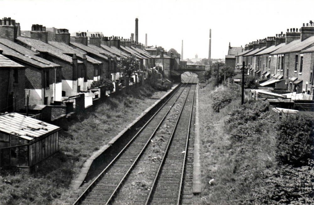 19. Continued from above: Let’s take a walk and see if the Grey Lady appears walking towards us from the depths. We‘ve got to stay close as she is reputed to pick off any stragglers. Now, this walk to the tunnel is not one to be savoured. We start off by having to climb over a high wall in the middle of a housing estate in Deepdale. The residents don’t seem overly concerned at this but it is off-putting knowing that the curtains are twitching. On the other side of the wall is a steep muddy embankment down to the trackbed. The eastbound rail is still in situ. The first part of the walk along here is horrendous. The householders appear to have chucked everything over their back fence which has rolled down the embankment into the bottom. It resembles a council tip in places. Fridges, freezers, tv’s, chairs, food waste, the lot’s down here. You come across piles of cable (minus the copper obviously), push bikes and wheels, needles, stained and stinking old mattresses. It’s grim for sure. The bike section underneath St.Paul's Road The same place years ago on the approach to Deepdale Station. (Credit to PDA) Continues below: