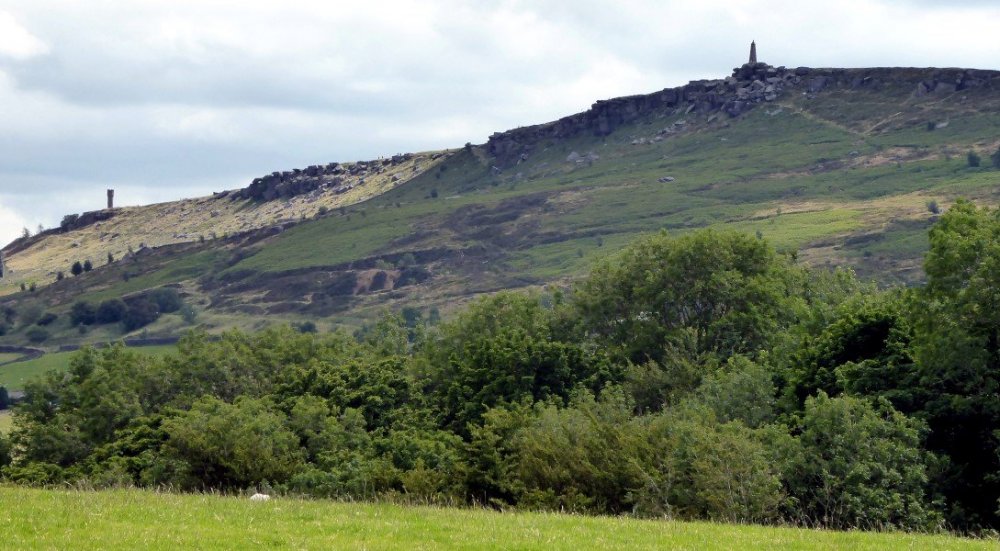 (continued from above) Now let’s go to the other end of the crag. Wainman’s Pinnacle was built in 1898 by a member of the Wainman family of nearby Carr Head Hall. The family had lived in the hall for over 300 years. There are many stories concerning the reasons for the monuments construction. One tale goes that a member of the family at Carr Head was possessed by the Evil Eye, and the column was built so that it was the first thing she saw each morning, and thus her gaze would cause no misfortune to those around her. A secret ledge containing a witch’s broomstick is rumoured to exist. There is said to be a charm buried under the pinnacle to rid Carr Head of ghosts. Other theories are that it was part of a network of beacons that were used to warn of marauding Scots invaders, and also as a landmark for aeroplanes. One of the old roads originally went over the high ground which was surrounded by bogs and pot holes. Shepherds and travellers used the two towers to guide their way as it was very easy to get lost on the moors. It was often said the monument dated back to the Civil War, but the most likely explanation is that it was built by William Wainman to commemorate the battle of Waterloo in 1815. Wainman’s son had served in the campaign against the French so the monument would also have celebrated his safe return home. Whilst the pinnacle serves its purpose as an eye-catcher the exposed position on the edge of the crag means it’s at the mercy of the Yorkshire weather. It has been struck by lightning numerous times. It was struck twice in one year and a large stone block was dislodged. It left it looking as if it had a large piece bitten out. Many thanks to Bob for the suggestion to check these out. Pics in the gallery include some scenes of the surrounding area. It sure is a nice spot. (continues below)