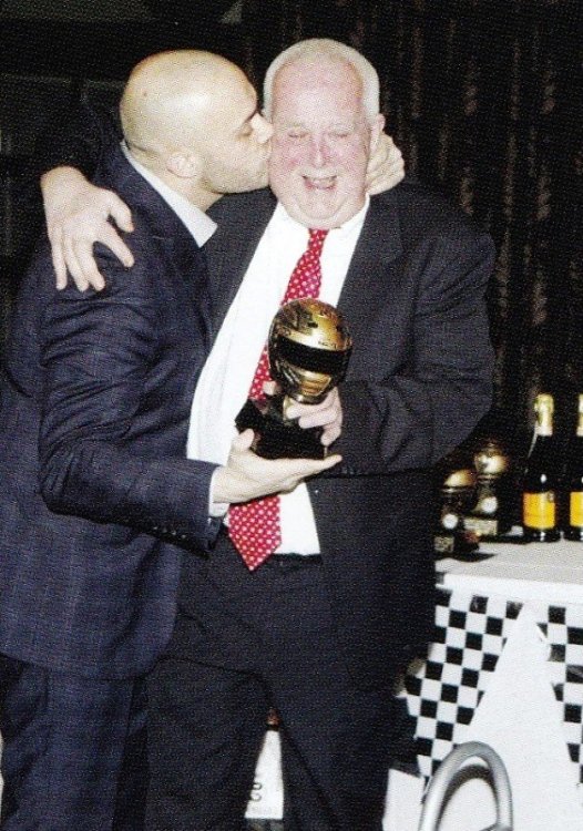 What a great couple of pictures from the lens of Dave Bastock. Steve Rees was Guest of Honour at the F2 Awards Night, and Jon Palmer (24) gave him a very warm welcome!