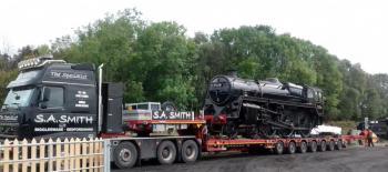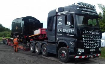 10. Happy New Year folks. Many thanks Bas. Yes there will be a few truck pics later this winter. Here’s a couple to be going on with for you. A pal at work is part owner of a Standard 5 steam loco. It is based at the Great Central Railway in Loughborough. Back in October it made a trip down to the Swanage Railway to take part in a steam gala. S.A.Smith heavy haulage took it down overnight using their “Black Magic” Volvo and Nooteboom trailer. The loco had been in use that day and still had steam coming from the chimney as it travelled down the motorway!