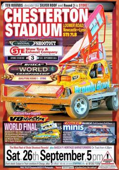 This is as i understand the formulas for each day: Saturday 8th October 6-30pm BriSCA F1 Stock Cars, BriSCA F2 Stock Cars, Ministox + Micro F2 Sunday 9th October 1pm 2 Litre Saloon Stock Cars Charlene Kingston Memorial, Micro Bangers Lincolnshire Championship, MD Hot Rods + V8 Stock Cars Keith -