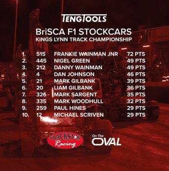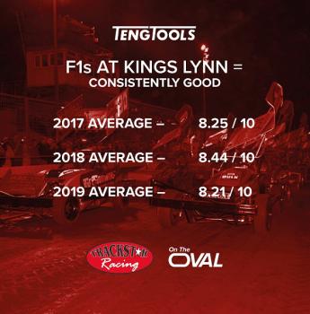 The Teng Tools sponsored F1 Stock Cars Track Championship enters Round 3 tonight; Frankie Wainman (515) leads the way; topping the table with superb consistency, but remarkably without winning a race at King’s Lynn, second place and leading race winner Nigel Green (445) is not scheduled to appear; will Wainman be able to capitalise and extend his lead or will someone else be able to close the gap? Find out tonight from 5:30pm (Ministox on track pre-meeting at 5:15pm) Photo: Colin Casserley, With thanks to On The Oval for the Graphic. -