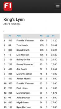 Whilst the big talk of Saturday night is about the Shootouts and whether Tom Harris (84) can take the 3 F1 Final wins in a row bonus. There is also the "track championship*" on the line. 11 points separate the top three. Who’s going to reign supreme and claim the bragging rights as “King of Lynn” ahead of the 2019 World Final. Find out tomorrow night! (Screenshot from F1stockcars.com and confirmed by Nigel Anderson F1's official grader) *no official title; just for fun -
