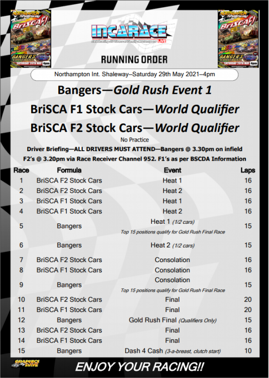 To be fair 20 cars shouldn't be too bad. With a few big names also in attendance as the 17 car meeting at Hednesford last year was fairly entertaining.