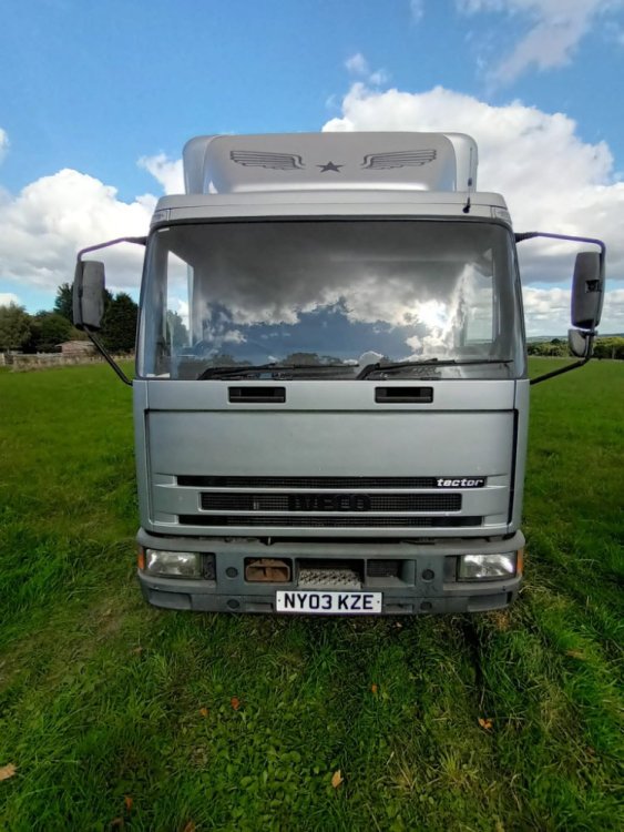 Posted on behalf of Graham Gascoigne. For Sale. Ex Peter Falding built, Iveco Tector 2003 Race Transporter. 7.5 ton. Mileage 273,000 KM or 170,000 miles. Price £7000. Built to carry an F1 Stockcar, we have used it to transport Autograss Class 5 mini for the last 8 years. During this time it has been well maintained and serviced. Been stored inside during our ownership, done 300 miles since last MOT, no advisorys. Registered as HGV. Current MOT expired, will MOT if right buyer is found. Contact Graham Gascoigne on 07854 950297. Wagon has cut through to cab living area. Winch, air supply to back, storage lockers, beaver tail, chequer plate floor. Loading ramps, tyre down points, internal storage. Living area sleeps 3. 3 way fridge, sink, two gas hobs, hot water heater. TV storage cupboards.