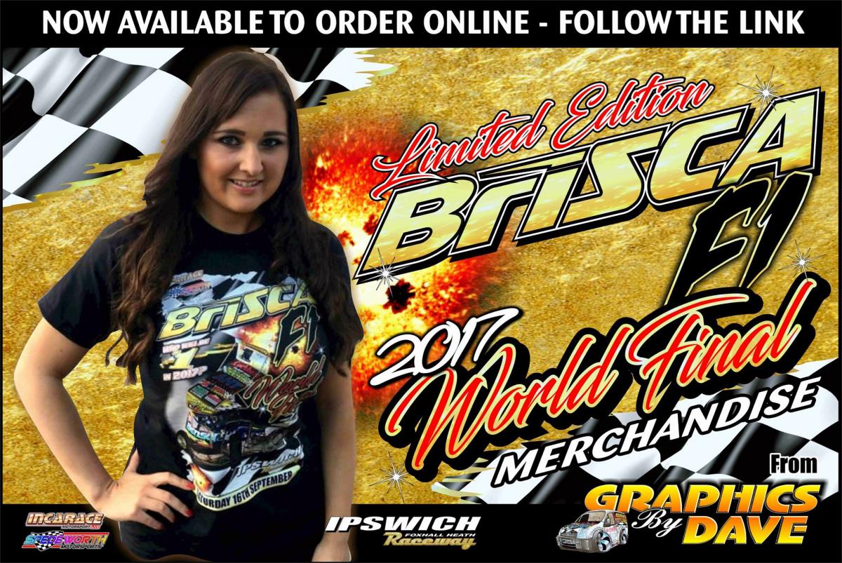 20. If, like me, you were once again disappointed to find that no matter how early you get to the World Final, the T-shirts have already sold out, then the good news is that more are being made, and can be ordered online. BRISCA F1 WF MERCHANDISE - NOW AVAILABLE ONLINE Many of the items including the t shirts plus the 'Coventry Remembered' items are now available to order online, follow the link. We have sectioned off UK and Holland so please only order for the designated countries as postal charges vary, it will display 'Holland' on the description. The order for the Black T Shirts will go into the printers at 6PM ON FRIDAY!! as we would rather not carry stock, so the deadline is then and after that, only the white option plus all the other items will be available to order. www.graphicsbydave.co.uk/brisca-f1-world-final--coventry-remembered-merchandise-4751-p.asp