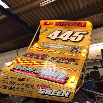 14. 445 Nigel Green is determined to add some silver to his multi coloured wing this season! New BriSCA Formula One world champion 445 Nigel Green now has his sights set on the silver roof, writes Mark Paulson. Winning the end-of-season Shootout was always his main target, as he believes it’s a more reliable measure of the year’s best driver. “The Shootout was plan A at the start of the season,” he says. “All the energy now is being put into that. The European and the World Final so far are just bonuses really.” “You’ve got Frankie [Wainman], myself and Stuart Smith all really wanting this Shootout so I think it’s going to be a good end to the season.” Only a “bonus” it may have been, but how did Green feel as he crossed the line to claim a maiden world title? “It was just a case of lighting the tyres up and enjoying the moment,” he says. “It’s a big achievement to win the World Final and we’re proud to have the gold roof.” Read more from Nigel Green, including how he won the World Final, in Saturday night’s programme for BriSCA F1 Shootout Round 3 at the Adrian Flux Arena, King’s Lynn. Racing starts at 5:30pm with BriSCA Formula Two stock cars also in action, contesting their first-ever National Series round. It looks like being a fantastic night of BriSCA action with 49 F1 stock cars and 60 F2 stock cars currently booked to race.