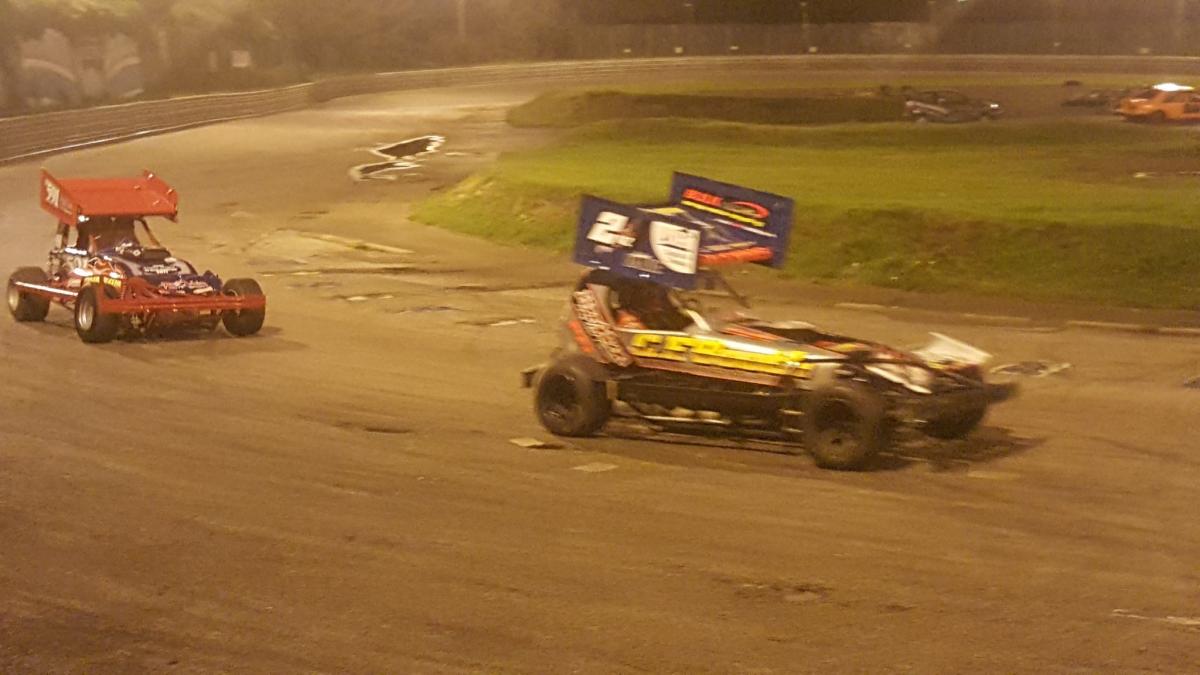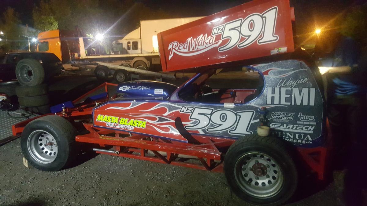 Two of the Kiwis are at Birmingham tonight, and so is John B. Jordan Dare in the Jordan Falding car and Wayne Hemi in the older Lee Fairhurst car. -