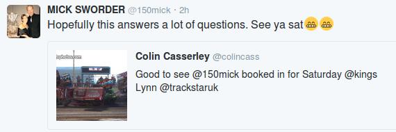 Thanks very much to all involved. I was trackside at Stoke last night, but keeping up with KL via this thread.