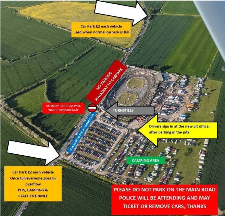 Gates Open: Sat 11am Sun 9.30am Pitgate and car park/camping opens Sat 11am Sun 9am Please don’t arrive before opening times, blocking the gates will delay the staff getting in to open up, and also blocking the road will cause problems, thanks. The gate at the turnstiles will be closed please use the gate at the far end of the car park, grain store end. If you have online advance tickets please read all the info on the ticket page, your order number (5 digits long) is important not your receipt number which is 8 digits long. Advance Tickets can’t be used at the pitgate. Gate Prices Sat: (on the gate only) Adult £22 Senior £20 Junior £8 Sun: (on the gate only) Adult £25 Senior £23 Junior £8 Weekend (in advance or on the gate) Adult £45 Senior £41 Junior £14 Camping £20 cash only (only available on the Saturday night and isn’t bookable) there are portaloos located in the camping area, which is behind the normal carpark in the farmers field. Car Park £2 per day Sorry no discount vouchers are valid for this event. 12 years and under as always go Free and can be added in advance if required Adults 16yrs and above, Senior’s 65yrs & over, Junior’s 13yrs to 15yrs Card or cash can be used. Sorry there isn’t a cash machine at the raceway. Drivers booked to race 2 Paul Harrison 5 Charlie Sworder 8 Catherine Harris 11 Neil Scriven 16 Matt Newson 19 Jon Horne 20 Liam Gilbank 25 Bradley Harrison 30 Tom Storry 43 Adam Bamford 47 Simon Traves 48 Shaun Webster 73 Chris Cowley 84 Tom Harris 91 Tony Smith 120 Casey Englestone 124 Kyle Gray 127 Austin Moore 128 Simon Binder 132 James Hall-Morton 135 Charlotte Haworth 147 Eddie Collins 161 Harry Moir 166 Bobby Griffin 175 Karl Hawkins 191 Joshua Smith 195 Dean Whitwell 211 Phoebe Wainman-Hawkins 212 Danny Wainman 216 Jack France 226 Darren Lindsay 242 Joe Nickolls 263 Chris Worrall 287 Jansen Wilkinson 295 Louis Goodwin 300 Paul Carter 318 Rob Speak 326 Mark Sargent 327 Dan Hughes 368 Callum Thornton 381 Tyrone Evans 408 Ant Whorton-Eales 452 Joshua Spiers 463 James Morris 484 Craig Utley 498 Olly Spencer 505 Roland Lamb 515 Frankie Wainman 524 Jason Cull 526 Finn Sargent 532 Daz Kitson 555 Frankie Wainman Jnr Jnr 559 Lilly Finnikin 568 Nick Schofield H229 Tsjalle Greidanus H318 Rik Lennsen
