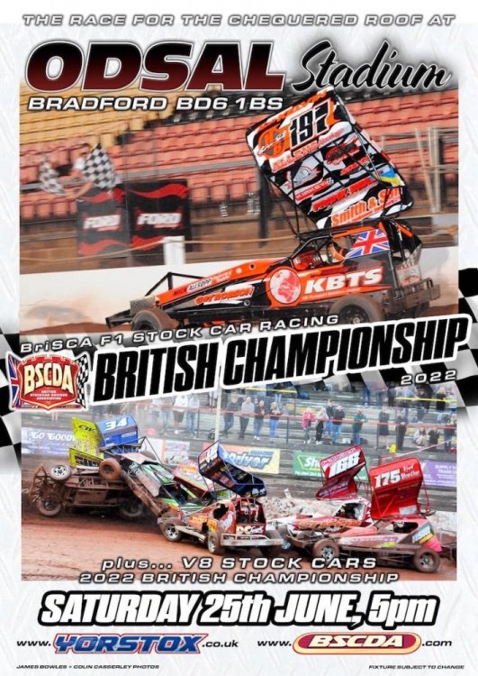 Adult - £25 Concession - £23 Child (10-15) - £12 Child (9 and under) - FREE Family - £65 Its British Final night at Odsal Stadium, Bradford! BriSCA F1 have been on fine form in the Bradford bowl this year so its going to be one not to miss. Add to this the V8 Stock Car British Final and it will be a night of pure Stockcar magic. Keep an eye on the website for all the detail YorStox have listened and are pleased to say that the pits will be open to the general public from 3pm to 4:30pm for you to come and get up close to the cars which are racing and meet and greet the stars of the show. All access MUST be via the turnstile entrance and you also must leave the pits once asked to by YorStox officials. Failure to assist in this may refrain from this being repeated in the future. Odsal Stadium is classified as an elite stadium, this does mean there is certain protocol that must be followed which is out of the hands of YorStox. Please note: • No Glass Bottles • No Pressurised container cans • No Alcohol to be brought in • Small amount of food is permitted If for any reason you encounter issues on the day we ask you please to approach a member of the YorStox team, they will be wearing a yellow Hi Vis with YorStox and STAFF on the back to raise a concern so that we can deal with this on the day. Advanced tickets are available by visiting https://www.yorstox.co.uk/Tickets Once a ticket is purchased via the site, you will recieve a QR Code to the email address provided (please check your junk mail). This code will grant you access to the stadium on race day. If you are arriving separately, you can 'transfer' tickets via the FIXr website to split down your booking, without this you must arrive together. QR codes will only be valid once so please do not try to forward this on. General admission tickets will be available to purchase on race day from the turnstiles entrances, we have a large stadium capacity and we will not sell out on the day. Cash and Card payments taken. Programmes will also be available from the turnstile entrances. The stadium boasts great viewing from all areas, including a 4000 covered seated grandstand (no extra charge). Please note you cannot reserve grandstand seats prior to the event. Food and drink outlets are available including licenced bars all around the circuit as well as trade stands which are located on the turnstile bend where you enter the stadium. Toilets are available all around the raceway including disabled access and baby changing facilities. Disabled parking is available around the back of the stadium along from the Q Gardens pub, please note spaces are limited and these cannot be reserved. General car parking can also be found here along with across the road at the Council Operated Richard Dunn's Centre (£5 per car charge). If you do not use these parking facilities please ensure you park sensibly and avoid using nearby housing estates as this will impact the future viability of the raceway. There is no general access to the pit area for Health and Safety reasons once racing begins.. Pit access is however avaialable from 3pm to 4:30pm. Strictly NO Alcohol or Glass is to be brought into the stadium. No dogs are permitted into the stadium. Details such as stadium opening times and driver booking lists will be updated closer to the event. Thankyou for your support and have a great day with YorStox. -
