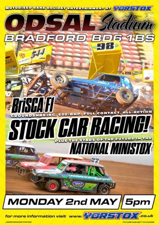 19. All roads lead to Odsal Stadium, Bradford old timer time trails begin at 16:45 and racing from 17:30. Admission is simply via the turnstiles.Please see below gate information. Cash turnstiles… T20 & T21 Card / Pre Paid Tickets … T24 & T25 Disabled access gate T5 (on back straight) please not this entrance does not have a ramp. Let’s go racing….check out www.YorStox.co.uk