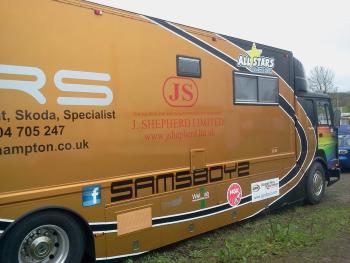 3. Posted on behalf of Andre Severs Race Transporter For Sale In great condition inside and out and ready to go racing in comfort. It is a euro1 engine. Our lorry sleeps 7 people and is fitted with everything you will need for short or long race trips away. At the front of the lorry you have a sleeper cab for 1 person with diesel night heater and a cut through into the main kitchen and living area. The kitchen has a gas oven and hob, microwave, 3 way fridge freezer,sink. The living area consists of seating for 7/8 people which converts into a small double bed with a stow away table and large flat screen tv. Heating is via a 12v diesel night heater. There are 2 main windows and 1 roof window in this area which open and have fitted in blinds and insect nets.This area then leads onto the shower / toilet room and double bunks. Behind this is a spacious raised double bedroom with a fitted wardrobe. There is 12v down lighting throughout. The lorry has both 12v leisure batteries and 240v hook up and new built in silent run generator with cold and gas heated hot water to the kitchen and shower room. The garage area is big enough to take anything up to a large saloon car. It measures 2.31m wide by 4.85m long. It is chequer plated throughout with plenty of power sockets and lights and a built in remote electric winch and hydraulic rear door. The rear suspension can be raised and lowered for ease of loading. The external of the lorry is painted black and Gold and there are plenty of lockers for spares with one having a tool box fitted in. There is also a 5mtr electric Fiamma awning and external light. We have recently fitted 2 new main batteries and 1 new leisure battery and 4 new rear tyres. It is taxed and Mot'd untill January 2013. We will put a years MOT on when sold. £23000 but we are open to sensible offers. The lorry is in Kettering - Any questions or offers please call Andre 07798 855089