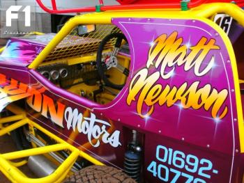 13. FOR SALE. My current F1 Shale car. Complete, on the button and ready to race. This car is only just over a season old from brand new and maintained regardless off cost. Built by Team newson to the higest quality. won many races and finals, car comes with new bumpers and side irons and all new panal work so it looks like brand new again. Includes- Big Block 510 Chevy, recently refurbished and only been used 7 times since build produced 670bhp. Steel scat crank. 4 Bolt mains. eagle rods. srp race pistons. brodix alloy heads with titanium valves miloden sump comp cam roller camshaft and lifters harland sharp roller rockers New holley race c and c ported carb New billet aluminium Carter fuel pump Allstar fuel filter and steel braided fuel pipes MSD distributor MSD 6al box MSD blaster 2 coil Taylor plug leads pro cool alloy radiator Headman headers Dyno tech silencers aluminium fuel tank K and N air filter tilton reverse drive bellhousing and starter motor (the best you can buy) Triple plate clutch Hydraulic release bearing doug nash gearbox Power steering Transit front axle with shocks mounted down the front Transit rear axle on birdcage setup with torque arm (and 5th link option as well) 5 star shockers all round 4 pot callipers on front with big bmw discs 2 pot callipers on rear with solid mounted discs Steel braided brake lines all round sweet steering wheel and coupling Tilton clutch cylinder Wilwood brake cylinders Wilwood brake proportioning valve X3 60 degree wilwood brake pedal box mounted beside the seat New autometer gauges (oil filled)- Rev counter, oil pressure and water temperacture lucas isolater and ignition switch Taylormade shale wing Kirkey lightweight seat with head restraints trw 5 point harness This car is as good as it gets and would also go on tarmac with no problems if needed £18.000. ring mat on 07826842622