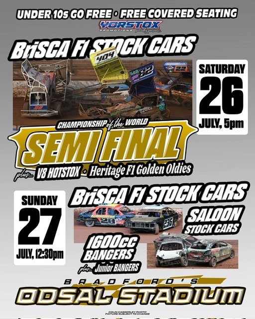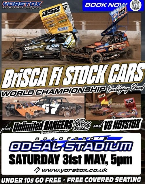 The wait is over, the 2025 season is here and we kick off with 4th season of YorStox Promotions. We have had a great 3 years of racing and we look forward to things keeping improving here at Bradford. This year we are back kicking off proceedings with a Stockcar Frenzy featuring BriSCA F1 competing in their Grand National Championship as the first race. This is a race based on the 2024 season and is often a fiercely fought race. Add to that there is the BriSCA F2 and with still 2 weeks to go nearly 40 cars are booked to race. Bradford plays host to the 2025 BriSCA F2 World of Shale and this event gives drivers both the opportunity to get some all important laps in but also to get points on the doors with this also being a World of Shale QR. If that’s not enough we also have the 1300cc Saloons and Classic F1s on the bill. Classic F1s will be racing two races pre meeting from 4:15pm with the main event starting from 5pm. Admission Prices – In Advance until Wednesday 26th March at 5pm Adult - £21 Concession - £19 Child (10-15) - £11 Child (9 and Under) – Free Family - £55 South Stand Upgrade - £40 Per Person Including Admission Advanced tickets are available by visiting https://www.yorstox.co.uk/Tickets Admission Prices – After 5pm on Wednesday 26th March and on the day Adult - £22 Concession - £20 Child (10-15) - £12 Child (9 and Under) – Free Family - £60 South Stand Upgrade - £40 Per Person Including Admission