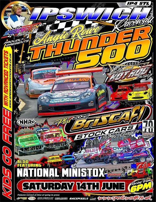 F1 World Championship Qualifying Round plus F2, National Saloons, and BriSCA Ministox. Advance ticket prices General Admission £21.00 Concession : (66yrs & over) £19.00 Concession : Children (0-14yrs) FREE* Inside Parking (Pay on the day) £10.00 Outer (Common Area) Parking FREE Programme (Pay on the day) £3.00 * Advanced ticket bookings only. Each child must be aged 14 years or under and must be accompanied by a full admission price paying adult. Advanced tickets available from https://spedeworthtickets.co.uk/ and close at 12pm on Friday 4th April 2025 Admission price at the gate General Admission £22.00 Concession : 66 year & Over £20.00 Concession : Children (5-14yrs) £8.00 Under 5yrs go free Inside Parking (Pay on the day) £10.00 Outer (Common Area) Parking FREE Programme £3.00 Drivers booked to race 5 Charlie Sworder 8 Catherine Harris 16 Matt Newson 20 Liam Gilbank 22 Lewis Hunter 120 Casey Englestone 124 Kyle Gray 132 James Hall-Morton 147 Edward Collins 212 Danny Wainman 226 Darren Lindsay 259 Paul Hines 312 John Thompson 345 Jake Harrhy 368 Callum Thornton 381 Tyrone Evans 389 Jack Morris 399 Harry Clayton 408 Anthony Whorton-Eales 453 Thomas Andrew 501 George Elwell 515 Frankie Wainman Jnr 526 Finlay Sargent 555 Frankie Wainman Jnr Jnr